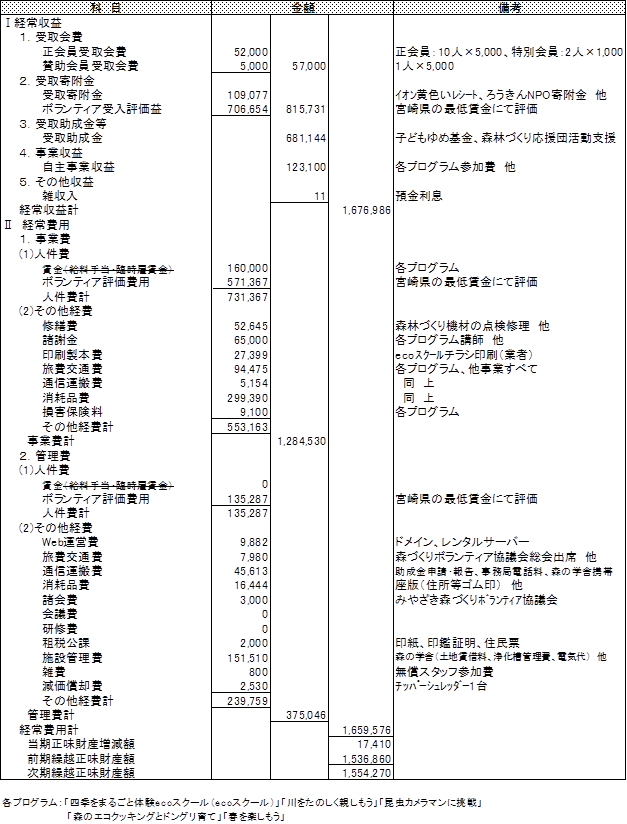 2019年度特定非営利活動に係る活動計算書(2019年4月1日から2020年3月31日まで)