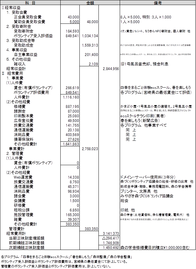 2022年度特定非営利活動に係る活動計算書(2022年4月1日から2023年3月31日まで)