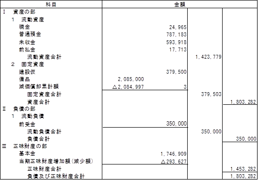 2022年度特定非営利活動に係る貸借対照表(2023年3月31日現在)