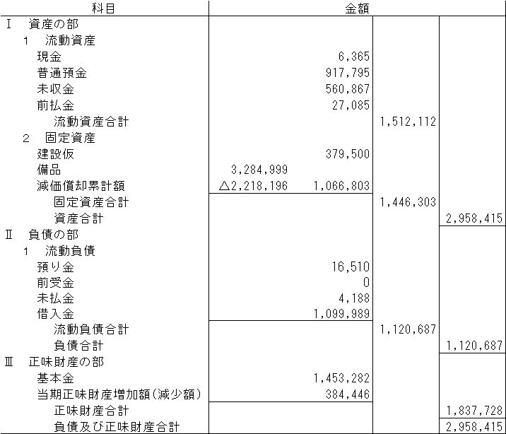 2023年度特定非営利活動に係る貸借対照表(2024年3月31日現在)