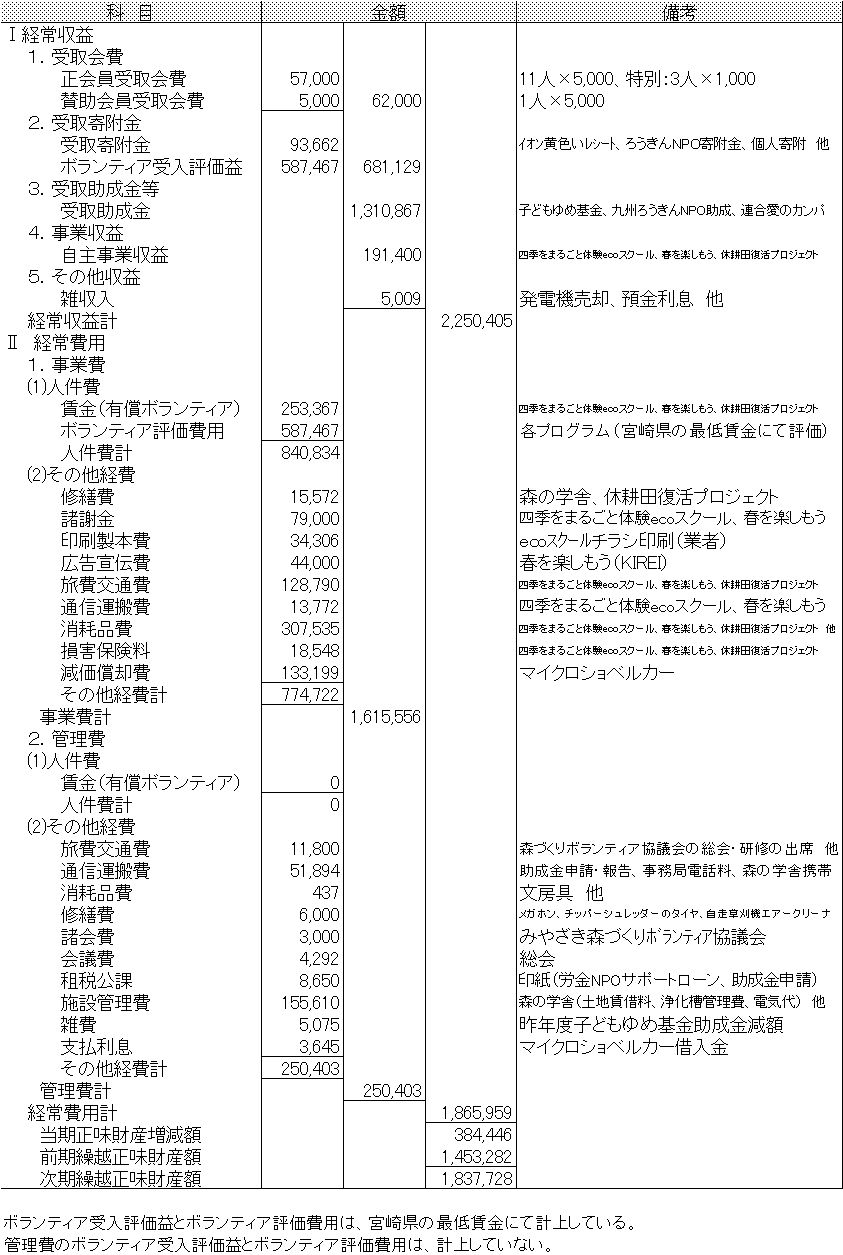 2023年度特定非営利活動に係る活動計算書(2023年4月1日から2024年3月31日まで)