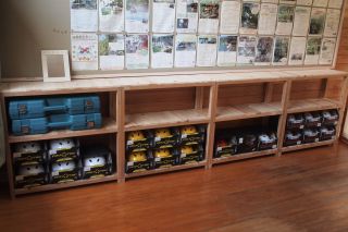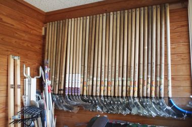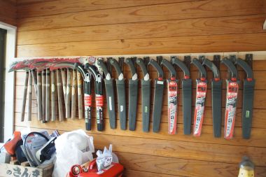 B 道具が増えて置き場が煩雑になってきたので、造林鎌と手鎌、鋸は壁掛けにしました。