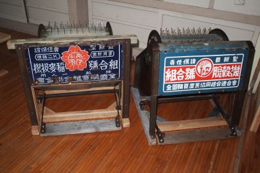 昭和20年代のモノと思われる足ふみ脱穀機は、シロアリで傷んだ木枠2本と踏板を交換しました。昭和初期のモノと思われる足ふむ脱穀機は、修理ではなく復元作業となりました。木枠1本しか使えず木枠全てを作り直し、ボルト類もすべて交換しました。
