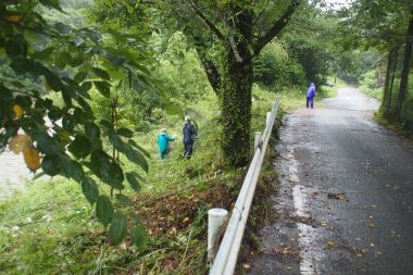 地区の方と合同で竹林の整備を実施する予定でしたが、雨の中での竹林整備は危険であるため、森の学舎周辺の草刈りだけとなりました。