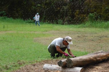 エコフェスタでは、グランドも使います。草刈り機と手鎌でグランドの草を刈り、刈った草は堆肥置場と樹木の根元に積みました。ヨメナ等の食べることができる草を残しながら、広いグランドすべての草刈りが終了できました。他に、エコフェスタ当日のスタッフ用臨時駐車場の草刈りもおこないました。