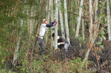 ![]() パウダー用に若竹を伐採 |