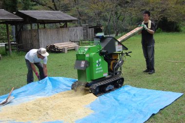 (チップ)以前伐採していた竹を粉砕しました。水分は十分抜けているので、粉砕後すぐに袋詰めができました。