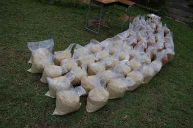 エコフェスタで販売するため竹チップ30袋と竹パウダー30袋を作りました。
