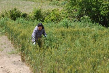 ecoスクール麦畑に、カラスノエンドウがたくさん茂ってきてたので、草取りを実施しました。