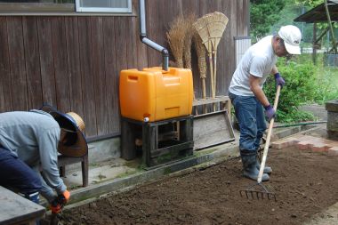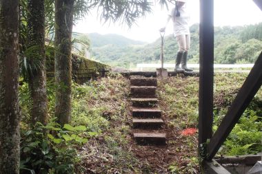 | 食育アイランド九州延岡交流会 | 森の学舎開放 | 階段設置 | 草刈り | 花壇撤去 | GW森の学舎整備 |