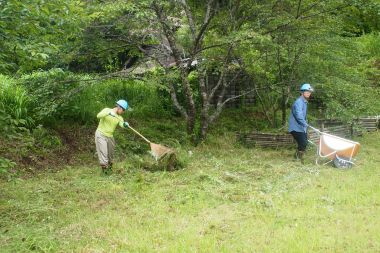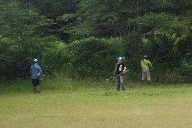 作業に適した曇り空で、森の学舎全体の草刈りを終ることができました。今年の草刈りは、やや人手不足の感があり、12時までに終わる予定が1時間オーバーで終了しました。草刈り終了後に、心配していた雨が降りはじめました。