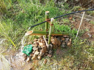 ビオトープの水路とその周辺が、イノシシに荒らされて困っています。イノシシが入り込まないようにと鹿威しの設置をしました。その効果に期待します。