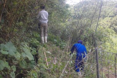 2日、3日:今年度実施する休耕田復活プロジェクトの10年近く放置されていた田んぼ畦に生えている竹や背高雑草の除去