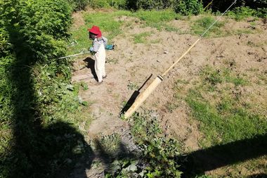 4日:草刈りが残っているグランドとビオトープへ水を流すホースまわりの草刈りを実施しました。グランド全部の草刈は終わりましたが、グランド以外の草刈りが残っています。