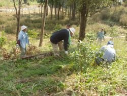 式典終了後は、森林づくり活動です。私達のグループの森林づくり活動(下草刈り作業)は、人数も多いし皆さん良く働くし、夏と比べて涼しいし、斜面も急でないので、比較的楽でした。担当区域が終わったので、他の区域に応援に行ってきました。他のグループでは、予定していた参加者が来ずに人手不足で大変だったグループもあったようです。ただ、表彰を受けた功労者や来賓の方も、下草刈り作業で一緒に汗を流して欲しかったですね。やはり、みんなで森林づくりに取り組んでいかないとね。