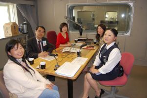 収録時のスタジオには、木佐貫ひとみパーソナリティ、高瀬みち子アナウンサー、県土整備部河川課の児玉さんと5人で、途中の楽曲や昔話で録音がされていない時など、わきあいあいおしゃべりができて楽しく収録が進んでいきました。