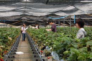 近くのイチゴ農園にてのイチゴ狩では、一人あたり約1kg〜2kgのイチゴを収穫しました。ビニールハウスでのイチゴ狩は、ちょっと暑かったです。それと昼食後ですから、あまりイチゴも食べれませんでした。