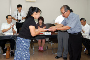 連合宮崎横山会長より、横山理事に目録が手渡されました。