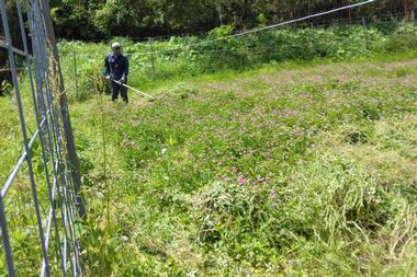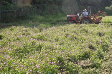 | 畦部分の草刈りです | 地元農家さんによる耕うん |