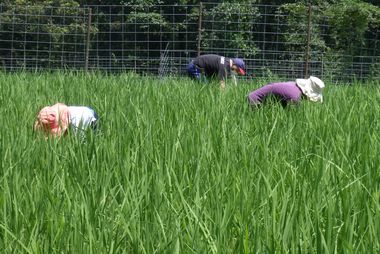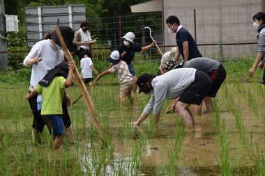 A 6/26:草取り、田んぼでネイチャーゲーム