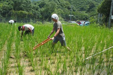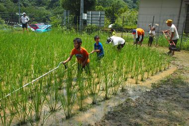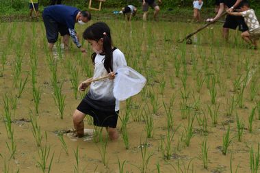 (ケンケン)梅雨の季節には雨の恵みを、梅雨が明ければ太陽の恵みをたっぷりと受け、稲はもちろん、田んぼの生き物は大きく育っていきます。米づくりにとっては、強い日差し、蒸し暑い気候の中、田んぼの除草や水路や畦の草刈り、そして日々の水管理とたいへんな作業の季節です。