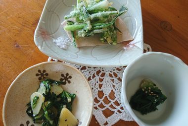 今回は、田んぼの生えているコナギを調理して食べることにしました。バケツ3杯分を収穫して、スタッフで天ぷら・和え物・炒め物・焼きそばにして、参加も一緒に食べました。