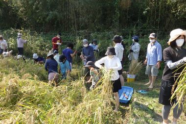 昨年度と比べて、今年は稲の成長が早く、米作りを指導してもらっている地元農家さんの助言で予定していた10月16日より2週間早く稲刈りを実施することにしました。