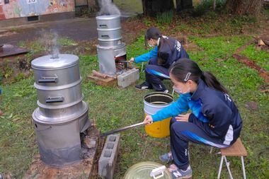 A 二基の簡易釜戸をファイヤーサイドに設置。