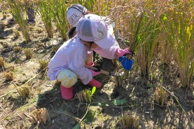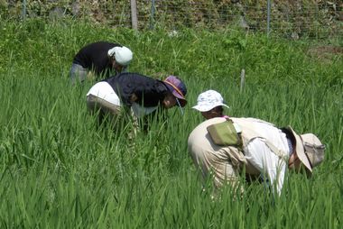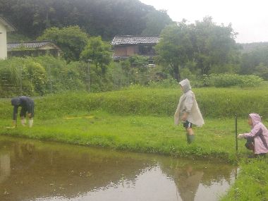 | 環境調査(生きもの探し) | 田んぼの草取り |