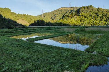 昨年度復元した田んぼと今年度復元する田んぼ両方に水を張り、田植ができる状態になりました。