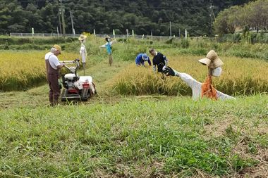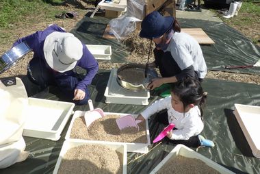 スタッフは、1時間30分前に集合して脱穀機や唐箕の準備をして、参加者を持ちました。