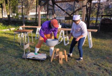他に、約5合のもち米を石臼で粉に挽いて、白玉団子にする試みも行いました。